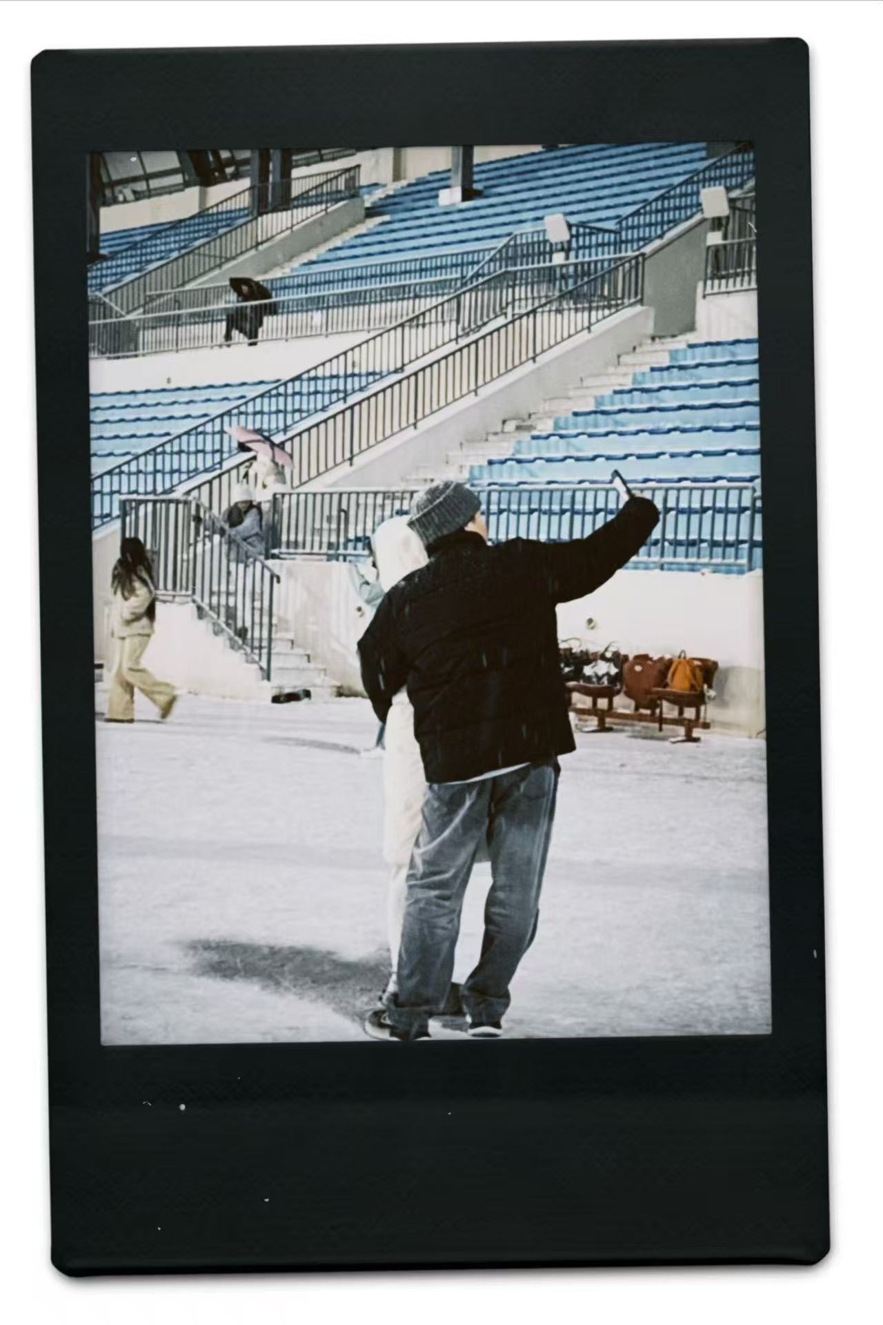 于是我也不在乎衣服会不会湿了,在白茫茫的大地上不沿着跑道走,在人群中穿梭。你民有好多浪漫疯子!操场上有音箱,有人唱歌,温暖的,展示。有观众,有朋友撒雪花。我站在周围,流着鼻涕律动。出门前就要掉出来的眼泪也在律动。迎风走,吃进一些热烈的雪花,让它们静静地待在我的衣帽上。也不是静静的,真的有雪落下的声音,沙沙。